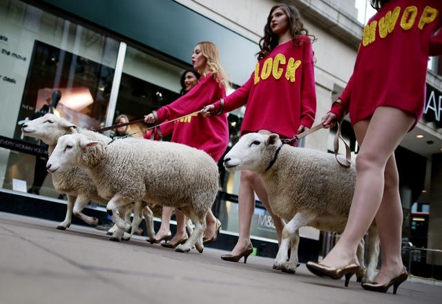 di jalan Oxford,London. Mereka mengkampanyekan hemat baju wol dengan cara mendaur ulang bajuwol lama ke 2 toko yang mensponsori aksi ini.